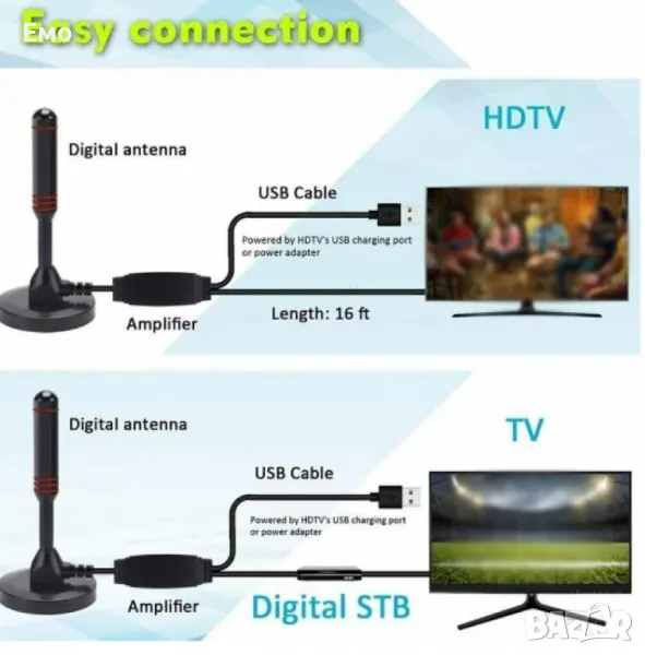 Вътрешна, телевизионна антена за цифрова DVB-T и аналогова Телевизия.