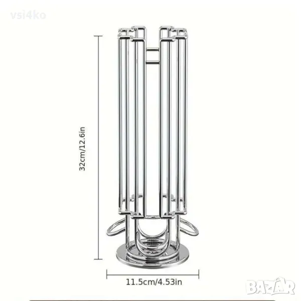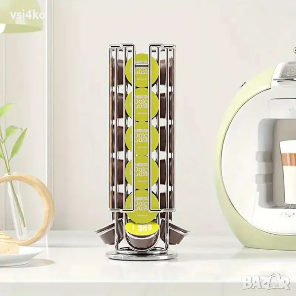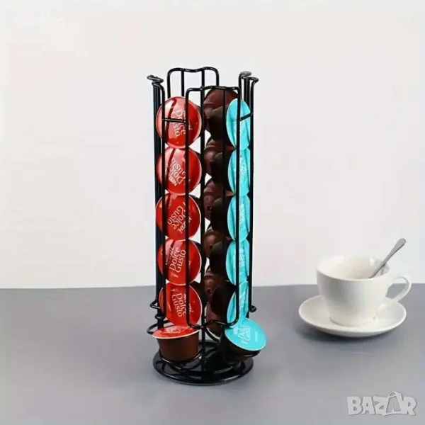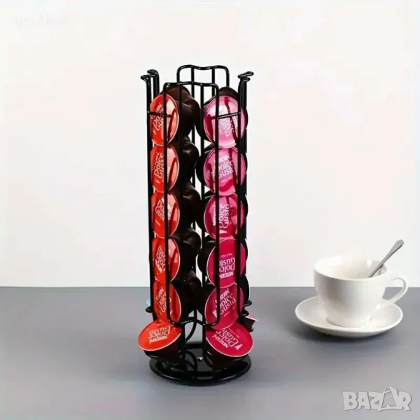 Практична и елегантна поставка, специално проектирана за съхранение на кафе капсули Dolce Gusto. С въртящ се дизайн, който позволява лесен достъп до всички капсули. Поставката събира до 24 капсули , осигурявайки удобство и стил във вашата кухня. Изработена от висококачествени материали за дълготрайна употреба, тя е компактен и функционален аксесоар за всеки любител на кафето.