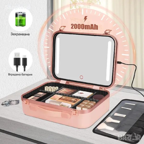 Представяме ви нашия стилен и практичен несесер за гримове с вградено LED огледало – идеалният аксесоар за всяка дама, която цени красотата и функционалността. Този несесер е проектиран да събере всички ваши козметични продукти и инструменти на едно място, като същевременно предлага удобно осветление, което ще ви помогне да се гримирате без усилия.