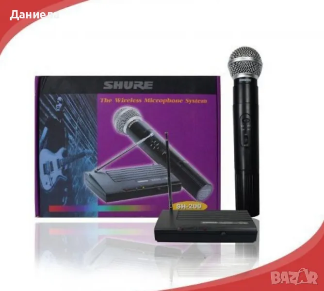 Безжичен микрофон с приемник ; Професионалният безжичен микрофон SH-200 е подходящ за събития, презентации и изпълнения на живо. Той разполага с висококачествен звук и стабилна безжична връзка;Основни характеристики:Модел: SH-200;Тип: Ръчен микрофон;Честотен обхват: UHF (Ultra High Frequency) за по-малко смущения и по-добро качество на сигнала;Обхват: До 50 метра;Захранване на микрофона: Вградена акумулаторна батерия;Приемник: Компактен приемник с лесна настройка;Честотна характеристика: 50 Hz – 15 kHz;Издръжливост на батерията: До 6 часа работа;Изходи на приемника: 3.5 мм и XLR;12 месеца гаранция.