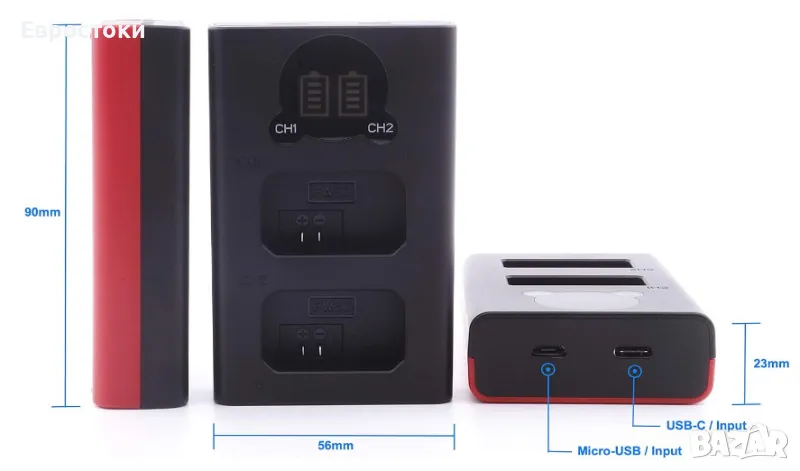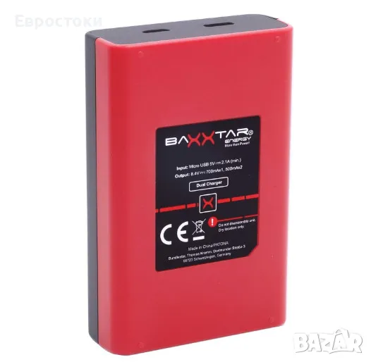Baxxtar двойно зарядно устройство за батерии Sony NP-FZ100 (18582), LCD, USB-C и микро-USB вход
