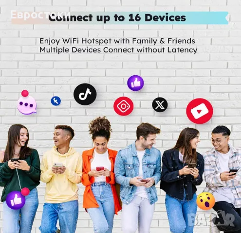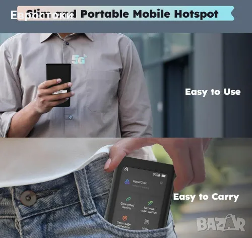 Глобални честотни ленти. С поддръжка за повече от 75 комерсиализирани 5G държави и над 350 операторски мрежи, този преносим WiFi рутер ви покрива почти навсякъде по света. Той също така поддържа както 2,4 GHz, така и 5 GHz ленти, осигурявайки по-голяма гъвкавост в управлението на мрежата и минимизирайки смущенията в претоварени среди.