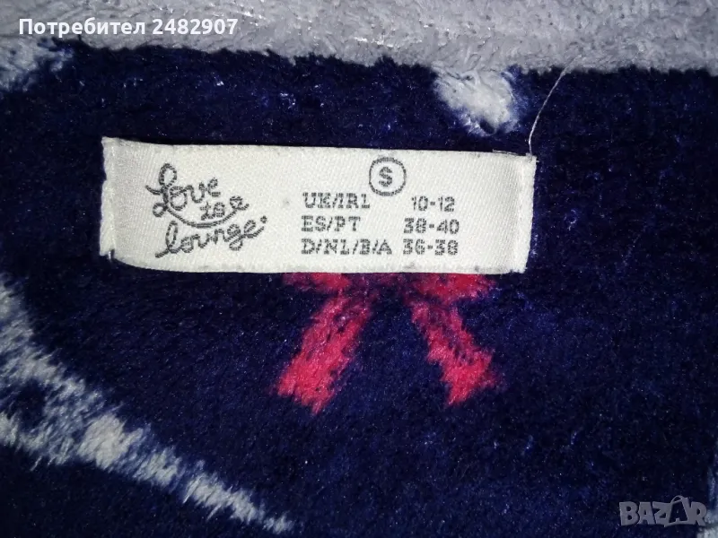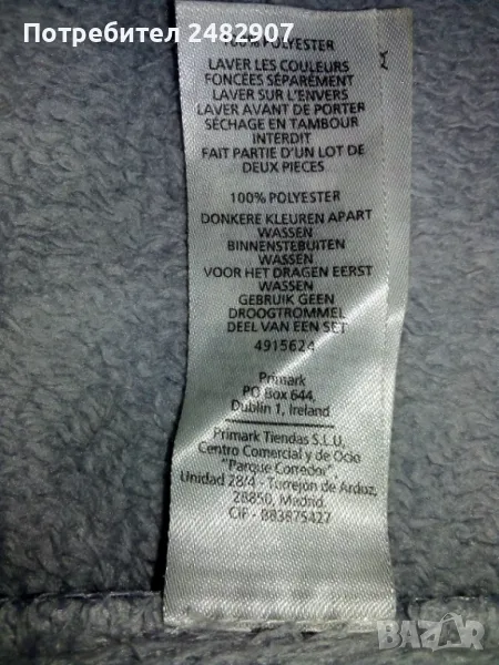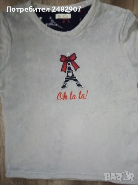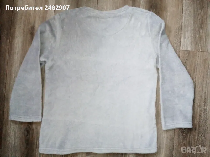 Дамска поларена пижама - горнище в сиво, размер S. Съдържа 100 % полиестер. Ширина в раменете - 43 см, ширина под мишниците - 54 см, ширина в долната част - 56 см, дължина от рамото до долу - 65 см, дължина на ръкава от рамото - 56 см, ширина на ръкава в долната част - 15 см. Много запазена, почти не е използвана.