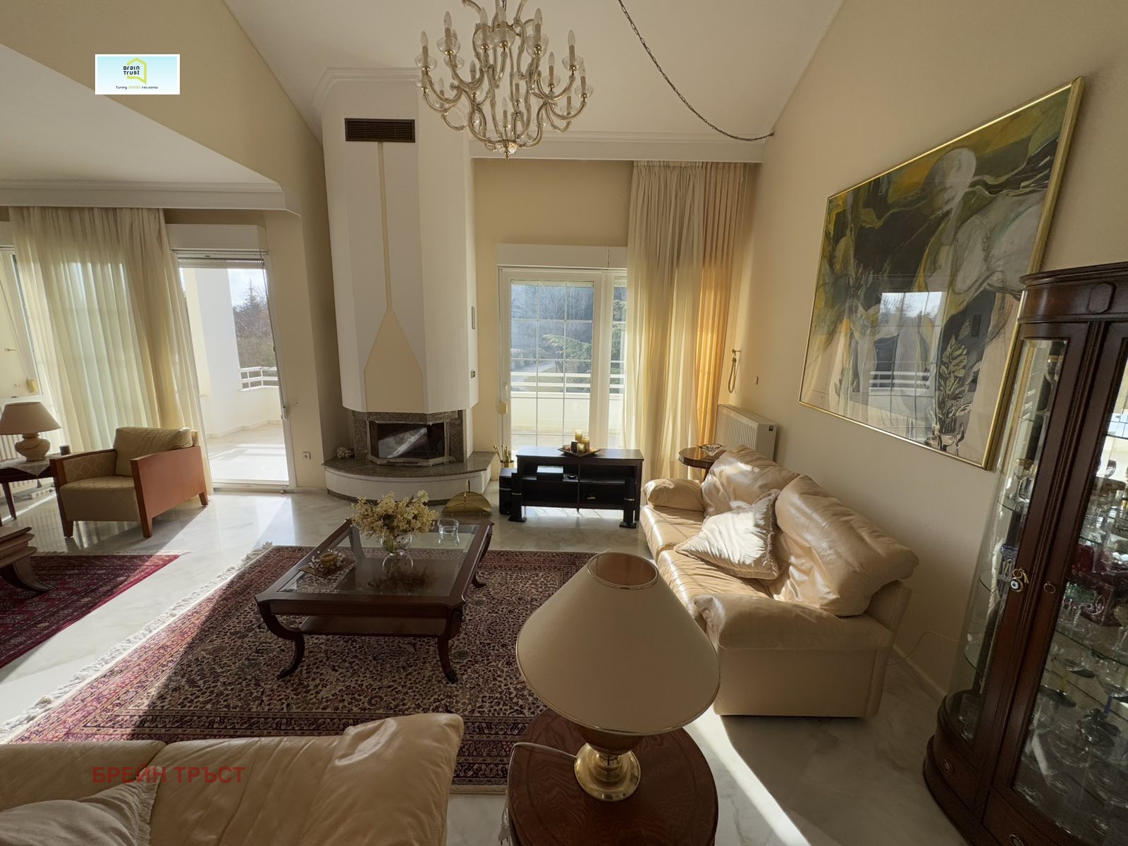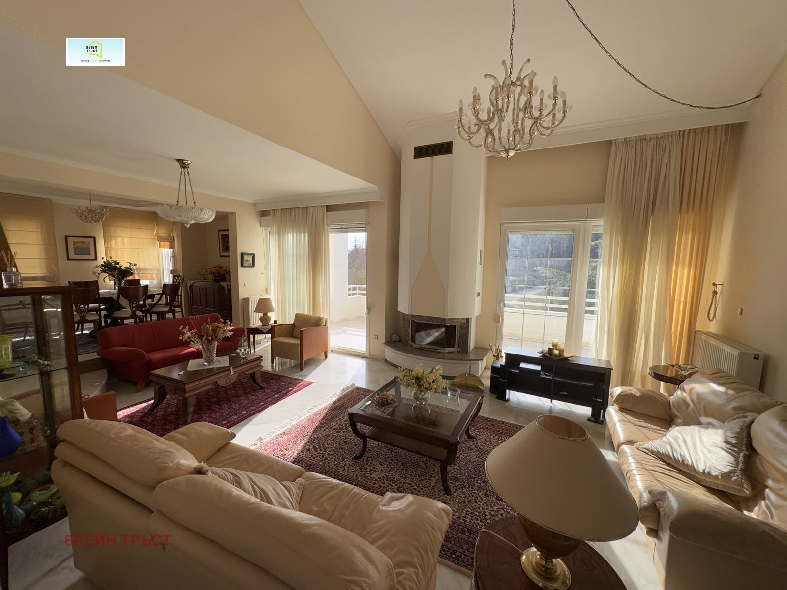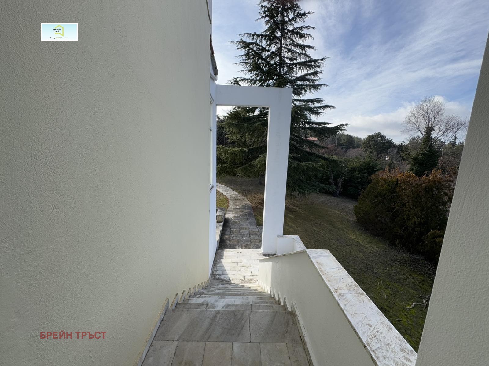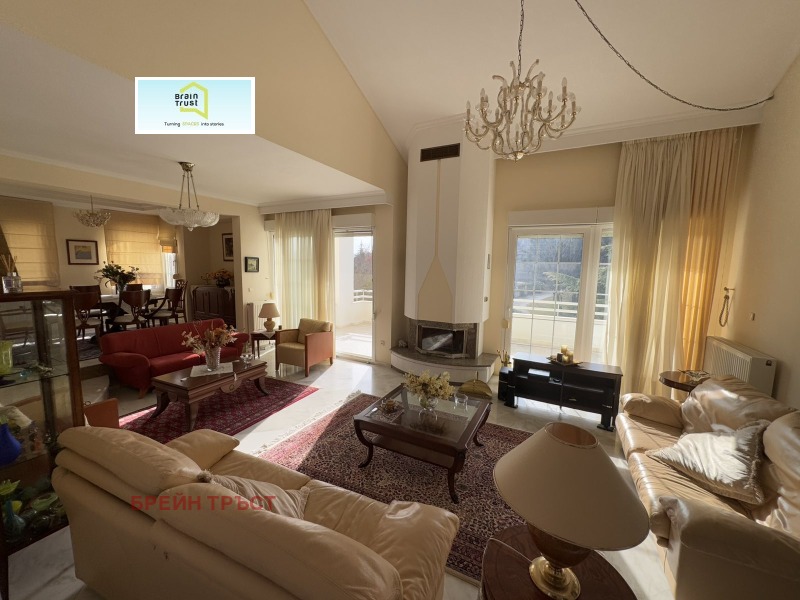 Имотът се намира в красив двор, със зелена площ с различни декоративни растения, с площ от 2000кв.м., а къщата е с площ от 315 кв.м. и се състои от 5 спални, 3 всекидневни, 2 кухни, 3 бани, покрит гараж за две коли и различни складови помещения.