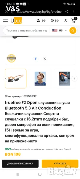 truefree F2 Open слушалки за уши Bluetooth 5.3 Air Conduction Безжични слушалки Спортни слушалки с 1