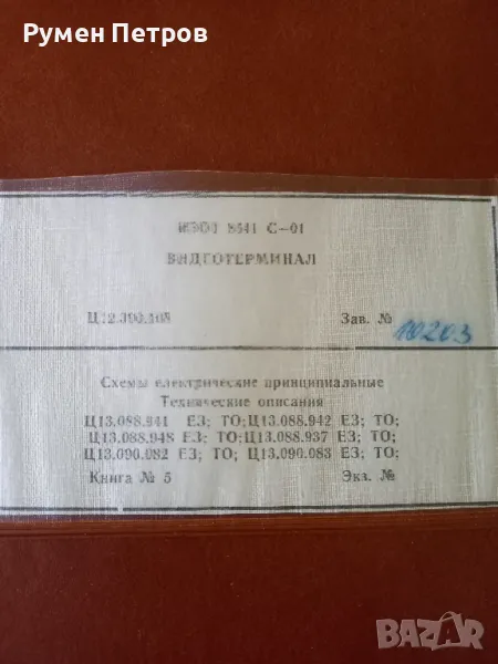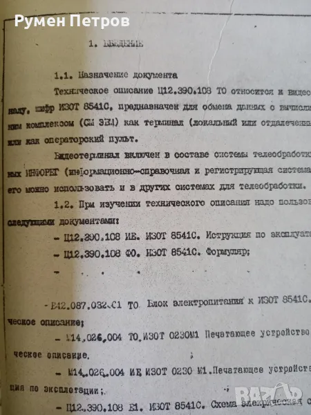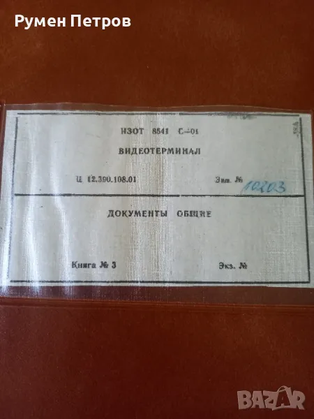 Пълен комплект от осем броя папки с твърди корици на видеотерминал Изот. Пълна техническа документация с множество схеми, таблици и други.
