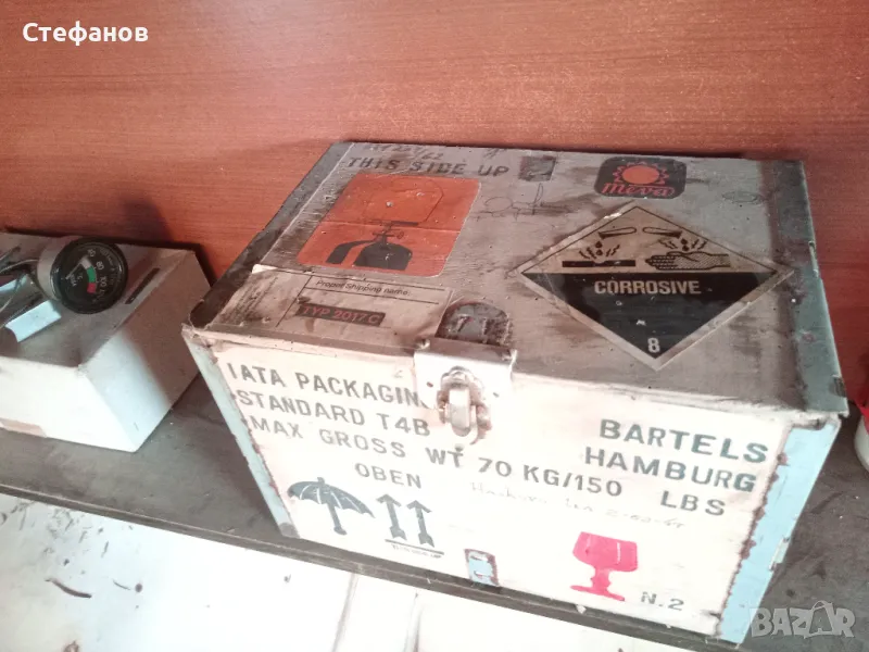 Газова лампа в автентичен дървен сандък ,нова.