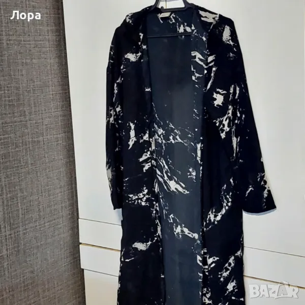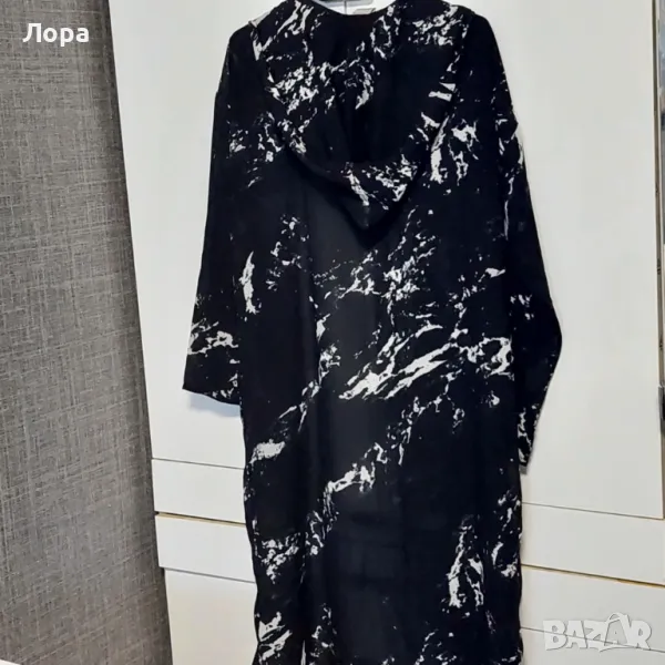 Дълга дамска туника с качулка. Без закопчаване, с два външни джоба. Свободен широк летен модел. Стои страхотно върху спортно облекли. От мишница до мишница едностранно 55 см, дължина на туниката 110 см.