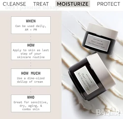 Богат крем с растителни церамиди за интензивна хидратация.