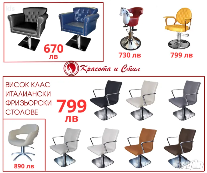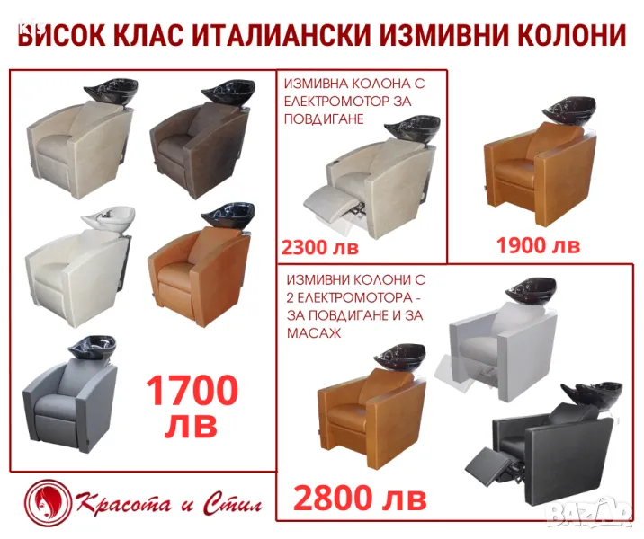 Освен резервни части за измивни колони, при нас ще откриете висококачествено и професионално фризьорско, както и козметично оборудване (фризьорски столове, измивни колони, столове за педикюр, вани за педикюр, масажни кушетки, козметични легла, работни табуретки, колички – козметични и фризьорски). Освен оборудване, от магазина или от уебсайта ни, можете да закупите професионална козметика за коса, лице и тяло на световно-доказани марки, гарантиращи чудесно качество и прекрасни резултати.