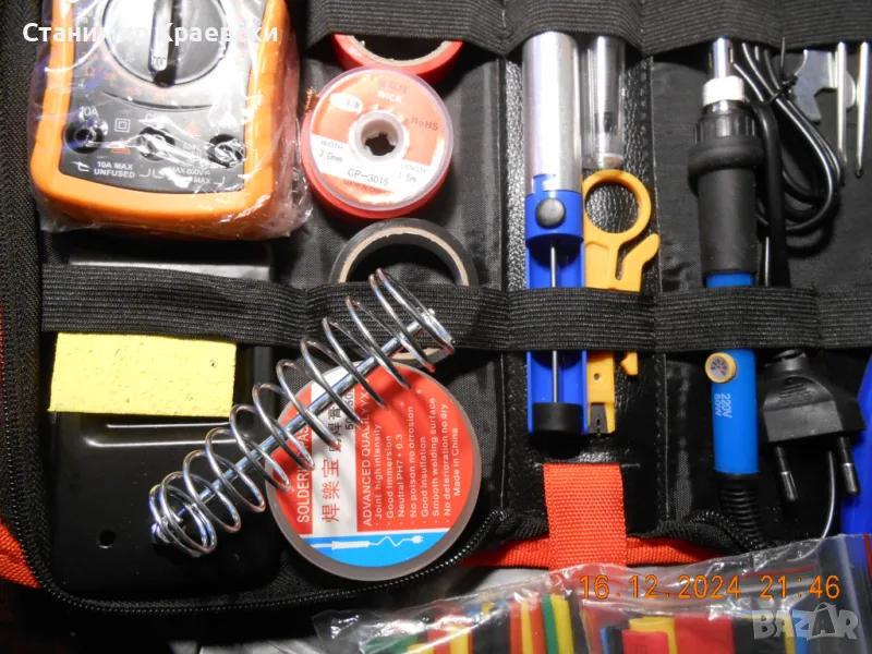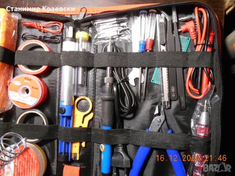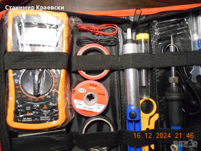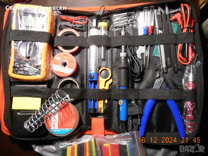 Един чисто нов пълен комплект /35 неща/ за радиолюбител и не само но и в друг отрасъл на електрониката Комплекта съдържа всичко необходимо - уред за измерване - поялник с контрол на температурата и 7 накрайника - и още много неща плюс термо шлаухки 8 вида около 40 бр.