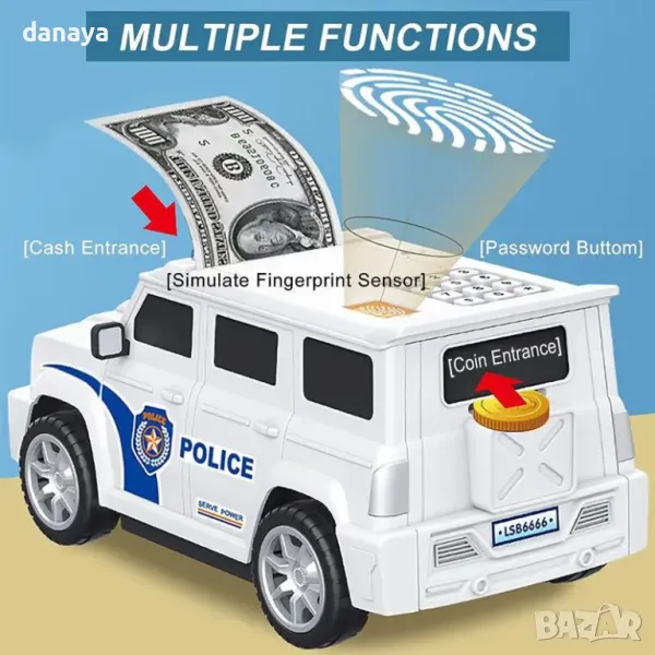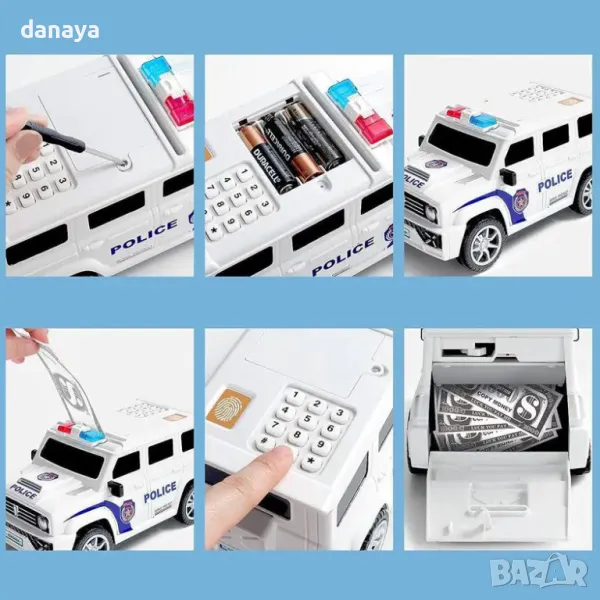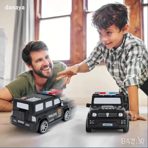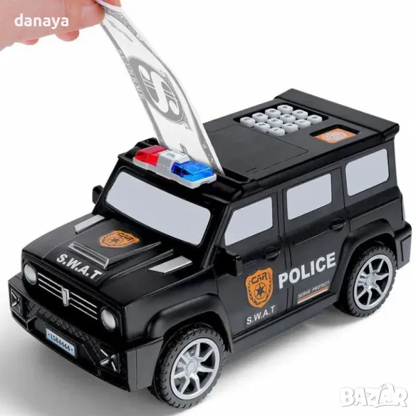 Касичка сейф, полицейски джип, касичка с пръстов отпечатък, банкомат касичка, сейф касичка, детска касичка, касичка с код, детски полицейски сейф, подарък касичка, касичка с парола, иновативна касичка, забавна касичка, детски подарък, касичка с пръстов отпечатък