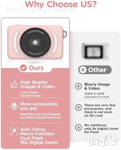 Интуитивен дизайн: Лесна за употреба камера, идеална за деца и начинаещи.