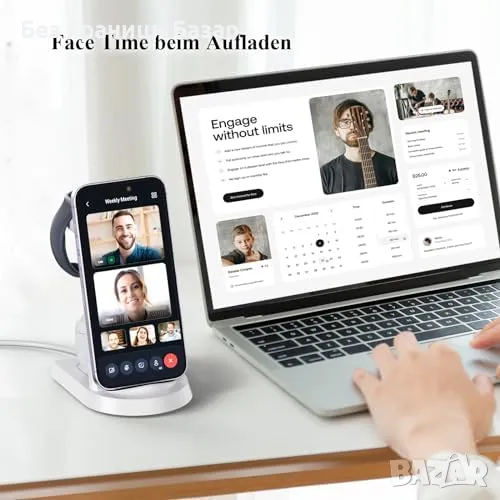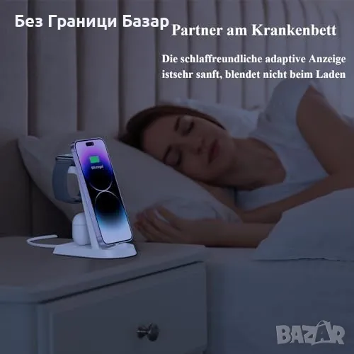 Зарядна станция 3-в-1: Едновременно зареждане на iPhone, Apple Watch и AirPods.