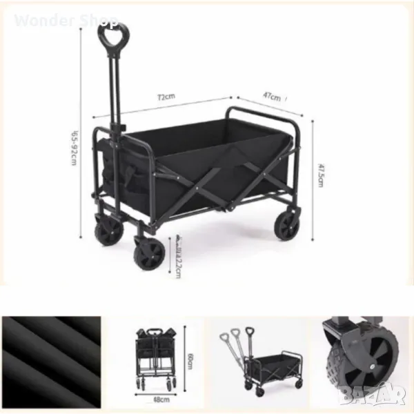 Размери на количката в разгънато състояние: Дължина: 72 см/Ширина: 47 см/Височина: 41.5 см;