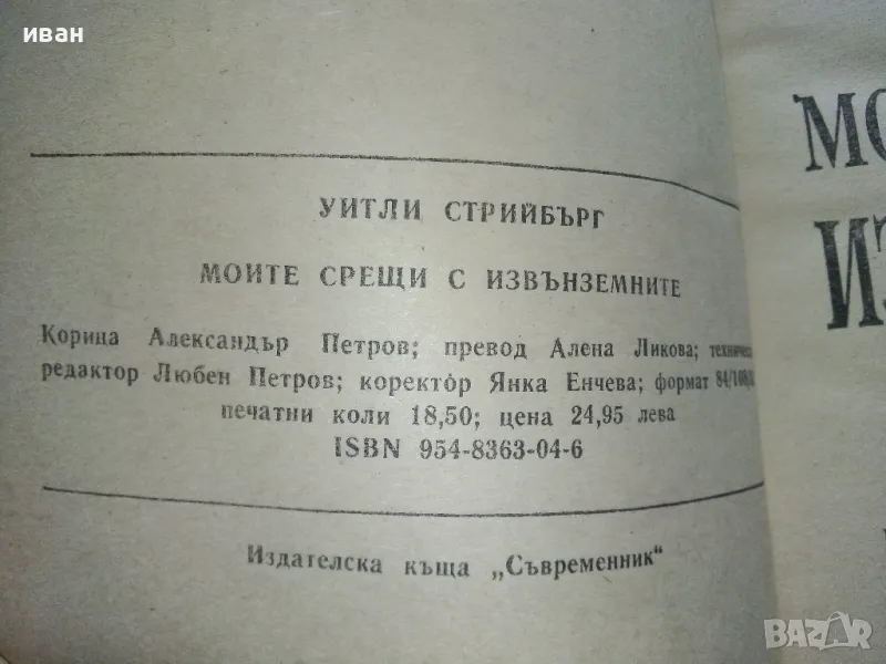 Моите срещи с Извънземните - Уитли Стрийбърг - 1993г. → Обява 48536598