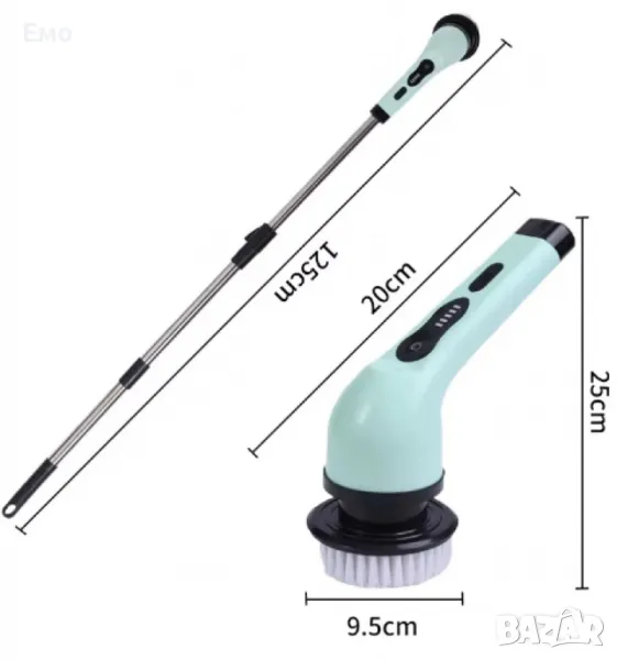 Включени в комплекта USB кабел, разтегателна дръжка, кръгла гъба + приставка за монтаж, 2 броя сменяеми глави четки.