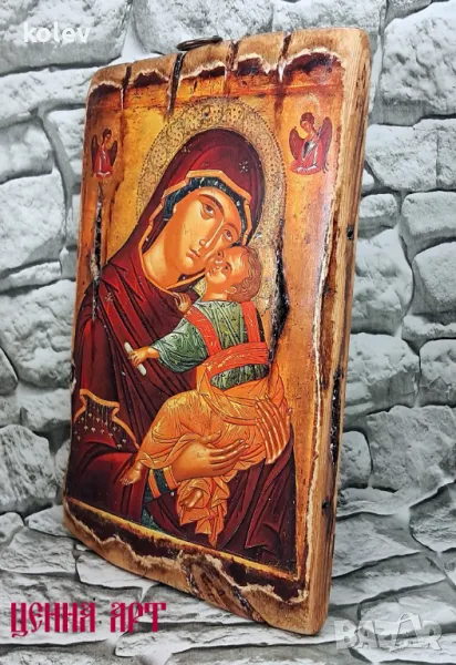 Иконата е ръчна изработка на "Ценна Арт", техника художествен декупаж върху дървена дъска.