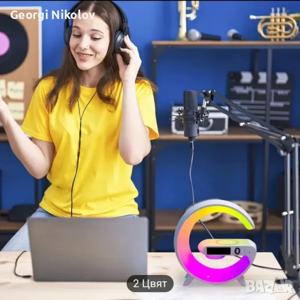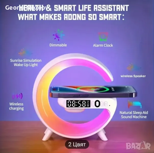 RGB безжичен високоговорител с безжично зареждане - многофункционална нощна лампа, будилник със заздравяване на изгрев и музикална помощ при нън - перфектен подарък за вашите близки.