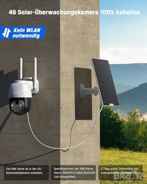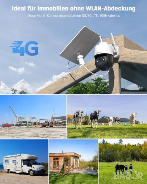 4G LTE свързаност: Камерата използва 4G LTE мрежа, което я прави идеална за места без Wi-Fi покритие.