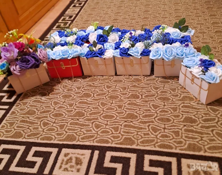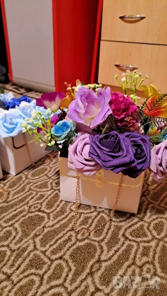Чантички с цветя,ръчно изработени за всеки повод.Цените варират,взависимост колко цветя има в чантичката.При интерес пишете на лично съобщение,изпращам чрез Спиди.