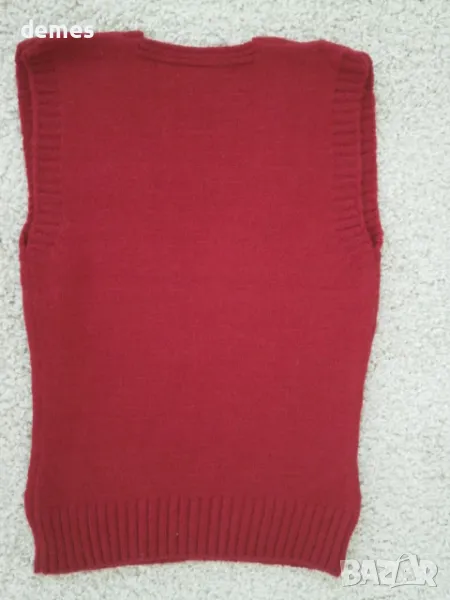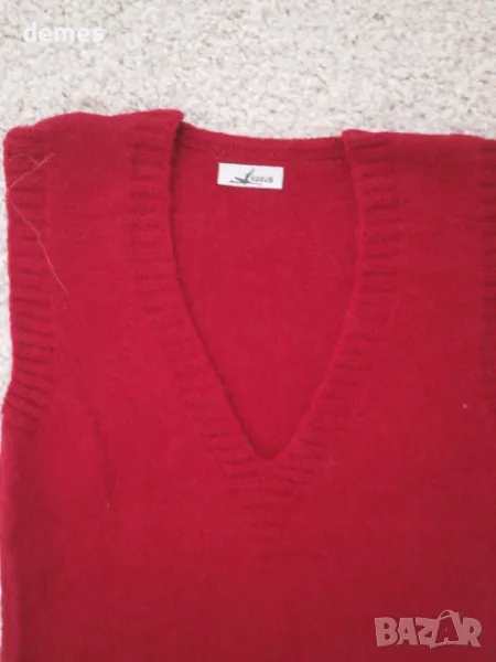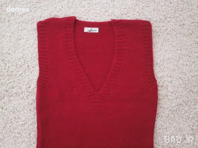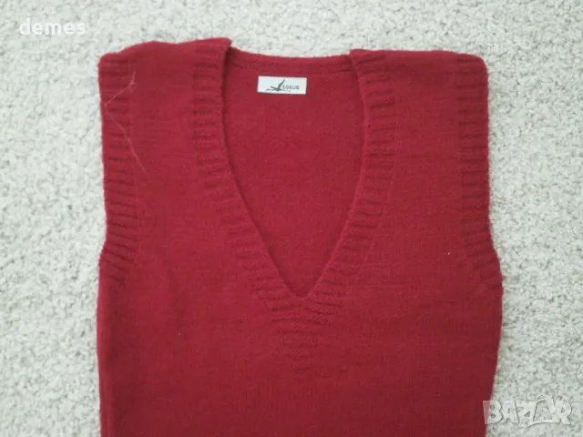 Дамски пуловер без ръкави от букле в цвят керемидено червено.