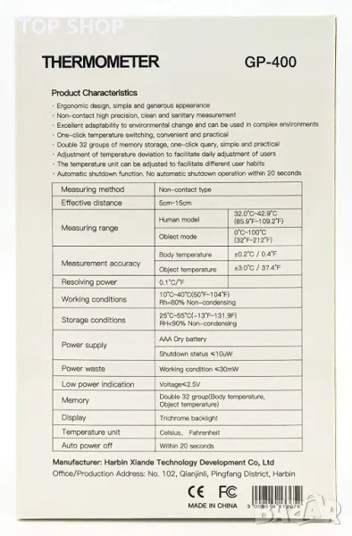 Безконтактен инфрачервен термометър Harbin GP 400