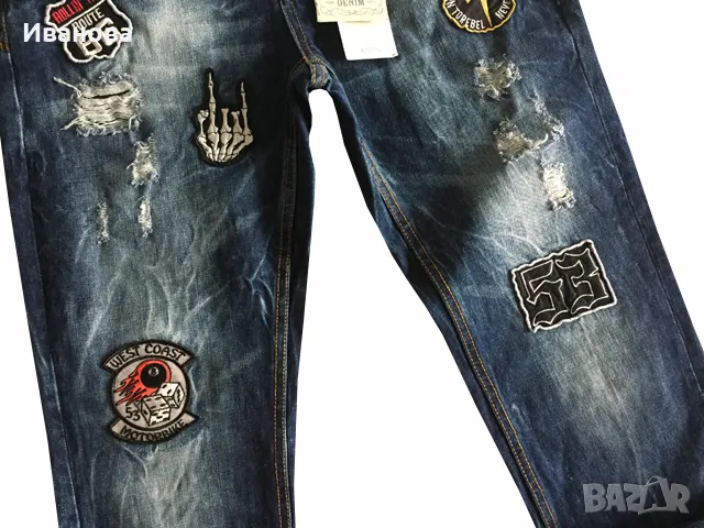 Размер по етикет 28 - М: талия около 38-39 см, дължина от талията около 100 см, дължина от дъното около 75 см, бедро в