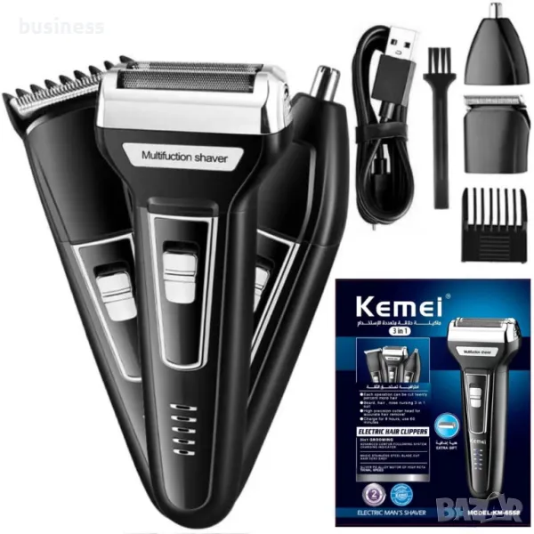 Електрическа самобръсначка 3 в 1 за мъжко подстригване, бръснене и тример Kemei KM-6776