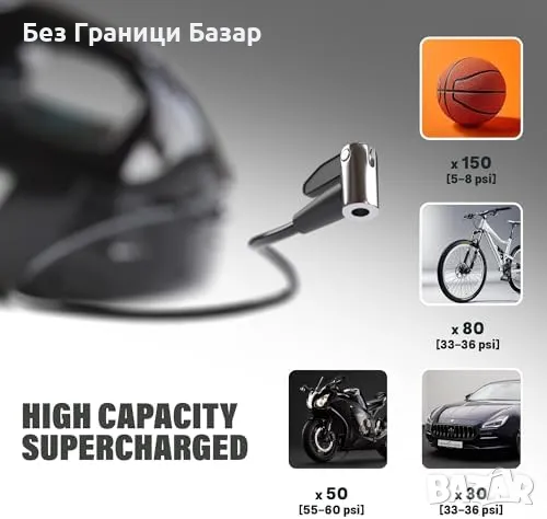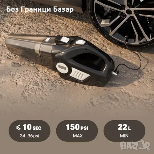 150 PSI компресор с прецизност: Надеждно помпа гуми на автомобили, велосипеди и мотоциклети.