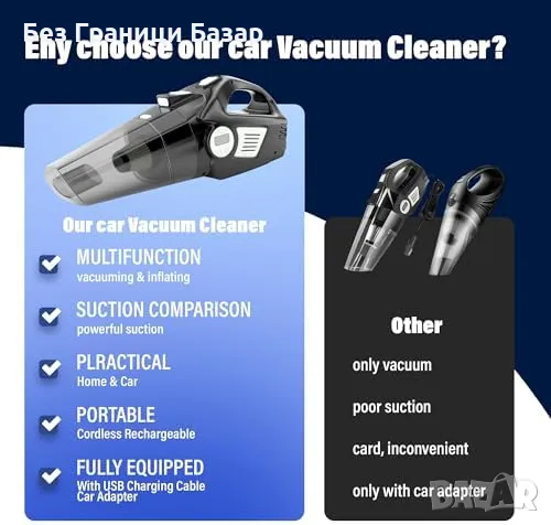 Нова Мощна прахосмукачка и компресор с LCD дисплей и LED светлина за кола