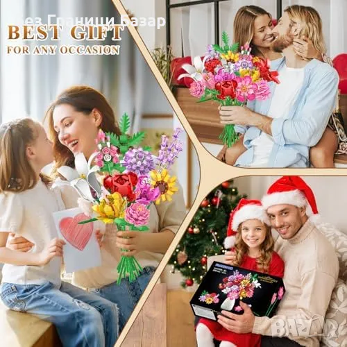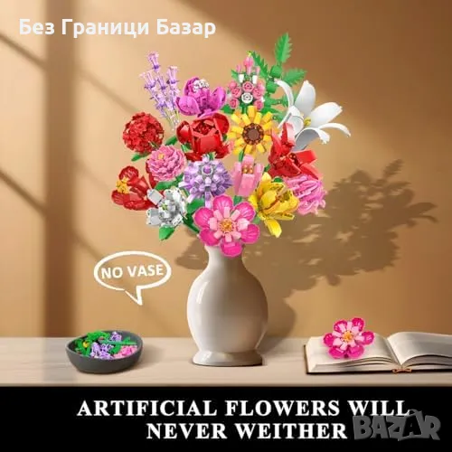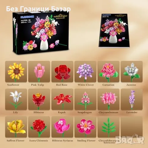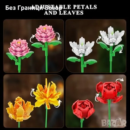 Нов Комплект за сглобяване на букет с 18 модела цветя, 1488 части