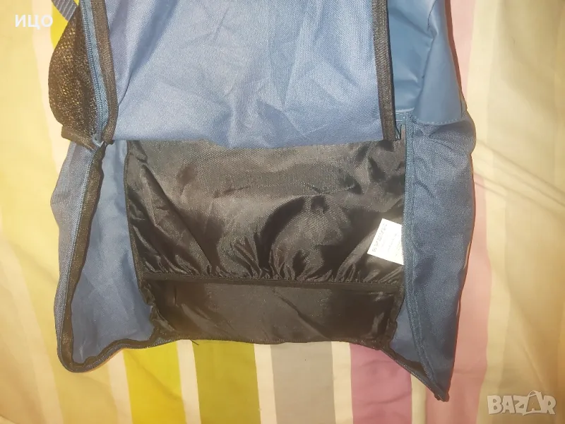 Състояние много добро на раницата Hummel. Тънка материя. Със едно вътрешно разделение, страничен мрежест джоб. Ципове и във двете посоки. Две забележки показани със молив, първата е една минимални дупчица отпред, другата е леко разплетено в началото на презрамките. Със закопчаване на презрамките. Дължина отстрани от горе до долу 43см. Размер one size. Цена 25лв.