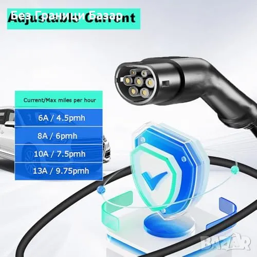Регулируем ток: Настройки 8/10/13A за оптимално зареждане и удължаване на живота на батерията.