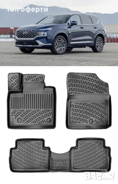 Гумени стелки RizLine съвместими с Hyundai Santa Fe IV Facelift Hybrid 2020-2023