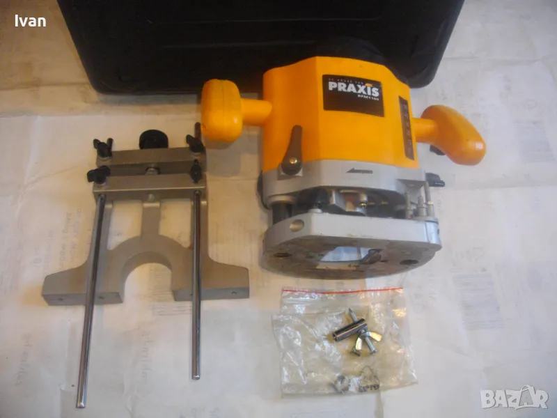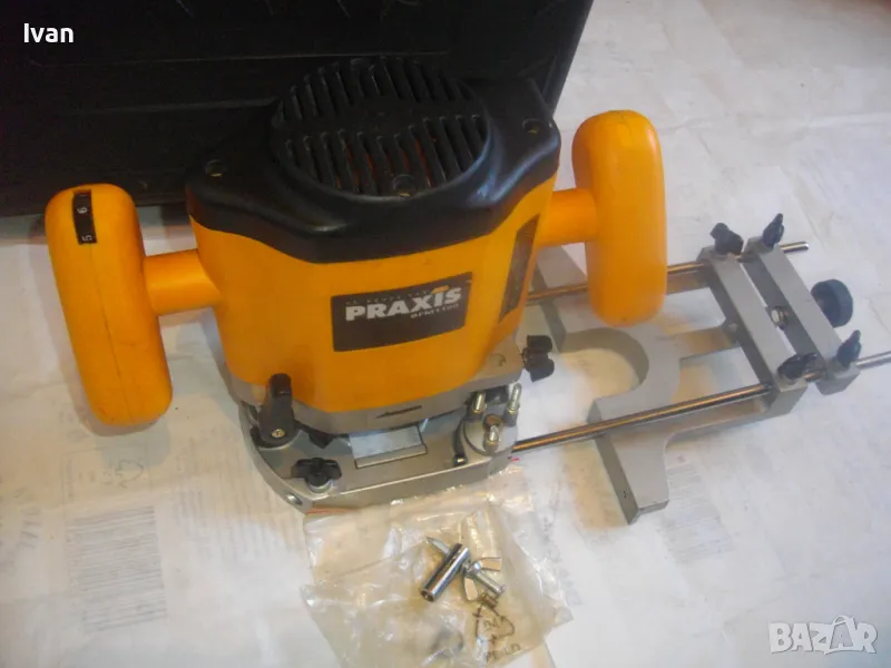 PRAXIS НИДЕРЛАНДСКА ОРИГИНАЛНА ОБЕРФРЕЗА 1100 ВАТА С ВОДАЧ И КУФАР ХОД 50мм за фрезер до ф35мм