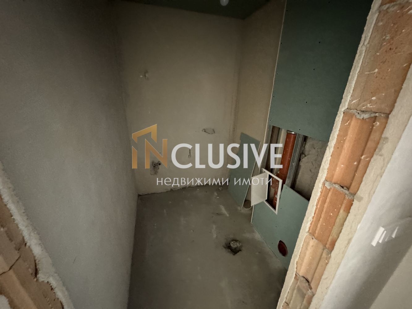 Стените са шпакловани, подовете са със замазка, а входната врата е блиндирана, от висок клас. Сградата е оборудвана със 7-камерна иновативна дограма, предлагайки отлична шумо- и топлоизолация. Ел. и външната ВиК инсталации са 100% завършени.