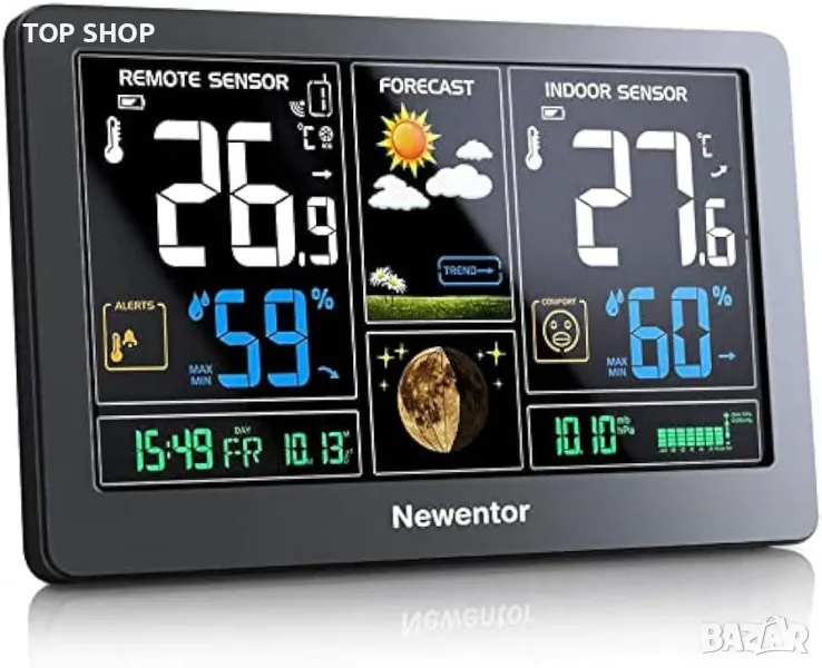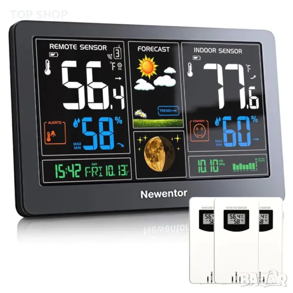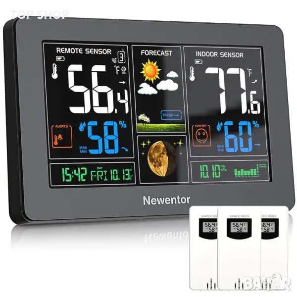 Метеорологична станция Newentor цветна с 3 външни сензора с екран