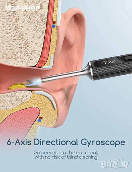 1080P HD камера Камерата за отстраняване на ушна кал осигурява 1080P HD камера и 6 LED светлини, които създават по-ясни изображения, за да ви помогнат да проверите за ушни инфекции или безопасно да премахнете ушната кал. Моля, внимавайте при първото използване.
