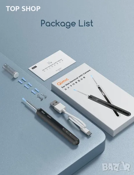 Камера с инструмент за премахване на ушна кал, камера Qimic за почистване на уши със светлина, 1080P WiFi камера за уши, отоскоп, водоустойчив комплект за отстраняване на ушна кал, средство за отстраняване на ушна кал с камера за iPhone и Android