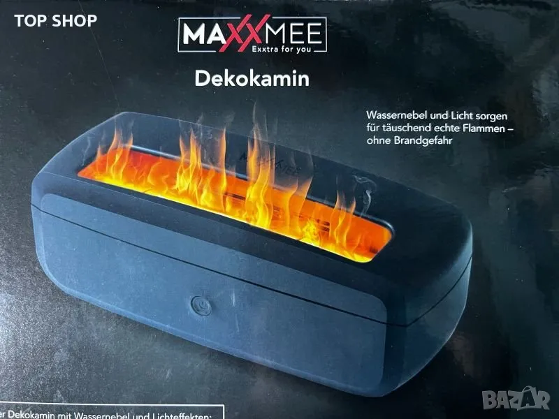 Декоративната камина Maxxmee бързо и лесно създава романтична атмосфера на камина – и без риск от пожар. Пламъците изглеждат измамно истински, но се състоят само от вода, която е пулверизирана от ултразвуков пулверизатор. По този начин не се използват химически вещества и не се разпространява неприятна миризма в дома. В допълнение към визията, декоративната камина Maxxmee има овлажняващ помещението ефект.