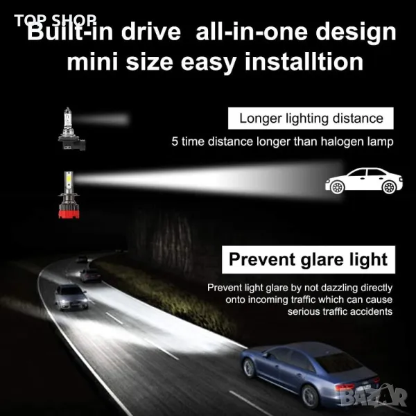 【Супер ярко приложение на DOBTechnology】 DOB CHIP LED в 6000K бял цвят, подобрява светлинната ефективност с 200%. Ъгъл на лъча 360 градуса, без слепи петна. Смело Използвайки ултратънък страничен дизайн, уверете се, че равномерната 360-градусова светлина без тъмни петна осигурява по-широк зрителен ъгъл. Не заслепявайте насрещния трафик, без заслепяване за другите шофьори. Осигурете си безопасност.