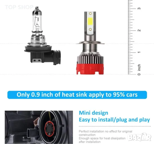 【Много лесна инсталация, готова за употреба】 Частта на радиатора е дълга само 23,5 мм, подходяща за 98% от автомобила, след монтажа има достатъчно място за дишане на фаровете. Може да се инсталира за 20 минути Plug & play. някои специални автомобили може да се нуждаят от CANBUS, като FORD, така че, моля, свържете се с нас по имейл, преди да го закупите.