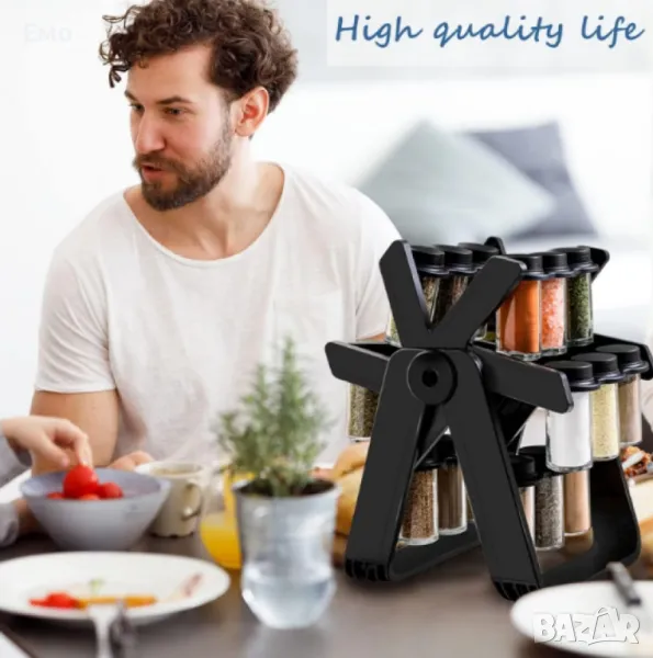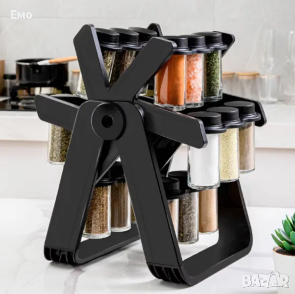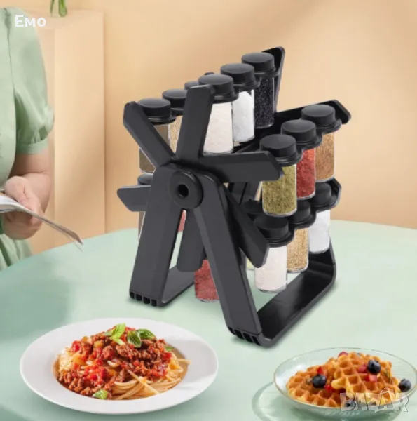 Въртящият органайзер за подправки с 18 стъклени бурканчета е идеалното решение за подредена и функционална кухня.