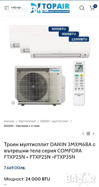 Климатик - Мултисплит Daikin с 2 тела - 3MXM68N2V1B - 24000 BTU → Обява 48541251
