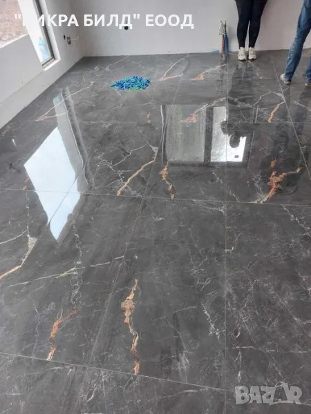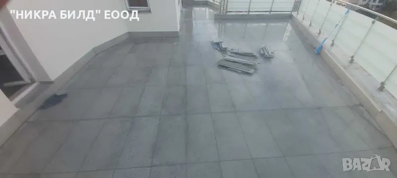 * Настилки и облицовки - полагане на всякакви подови настилки и стенни облицовки от гаранитогрес, теракот, есттествен камък, технически камък, фаянс и др.
