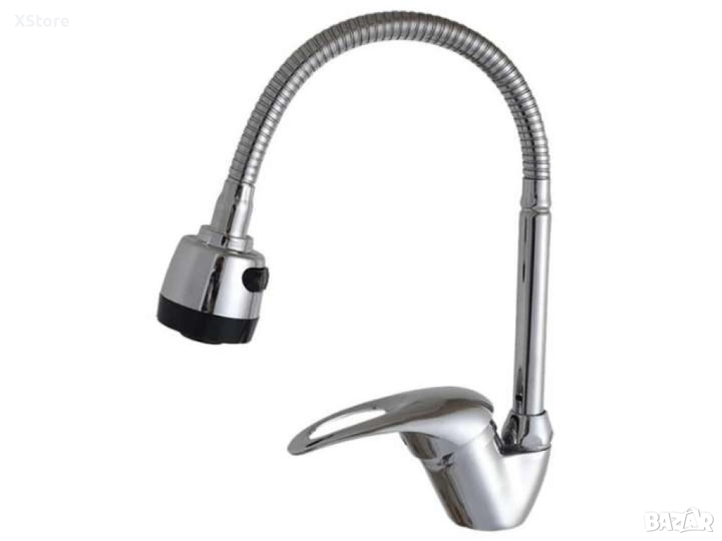Смесител за вода с гъвкав чучур, вертикален с покритие от хром