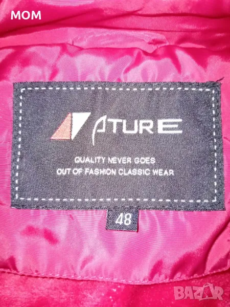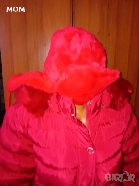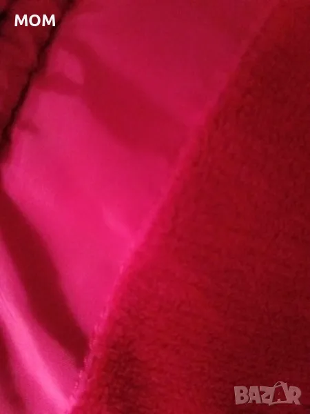 Цената е за двете - яке и шапка. Много добро състояние. Дебело, топло яке с пухкав хастар и качулка. Използван продукт като нов, номер 48. Цвят червено - циклама. Джобове с цип.