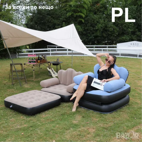 Надуваемият фотьойл 5 в 1 SuperSofa е революционен мебелен аксесоар, който обогатява вашето пространство с несравним комфорт и функционалност. Този фотьойл не е просто място за сядане; той представлява настоящо творение на съвременния дизайн, обединяващо пет различни функции в едно - фотьойл, легло, диван, стол и още много. SuperSofa е перфектният избор за уют в дома, градината, къмпинг или плажни приключения.