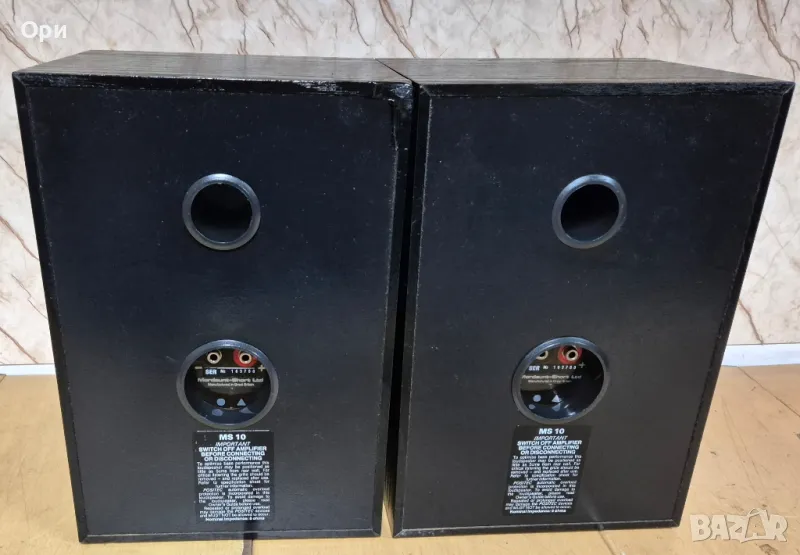 Забележка: на едната тонколона липсва отпред долу пластмасата с логото на Mordaunt-Short (снимано) !!!!